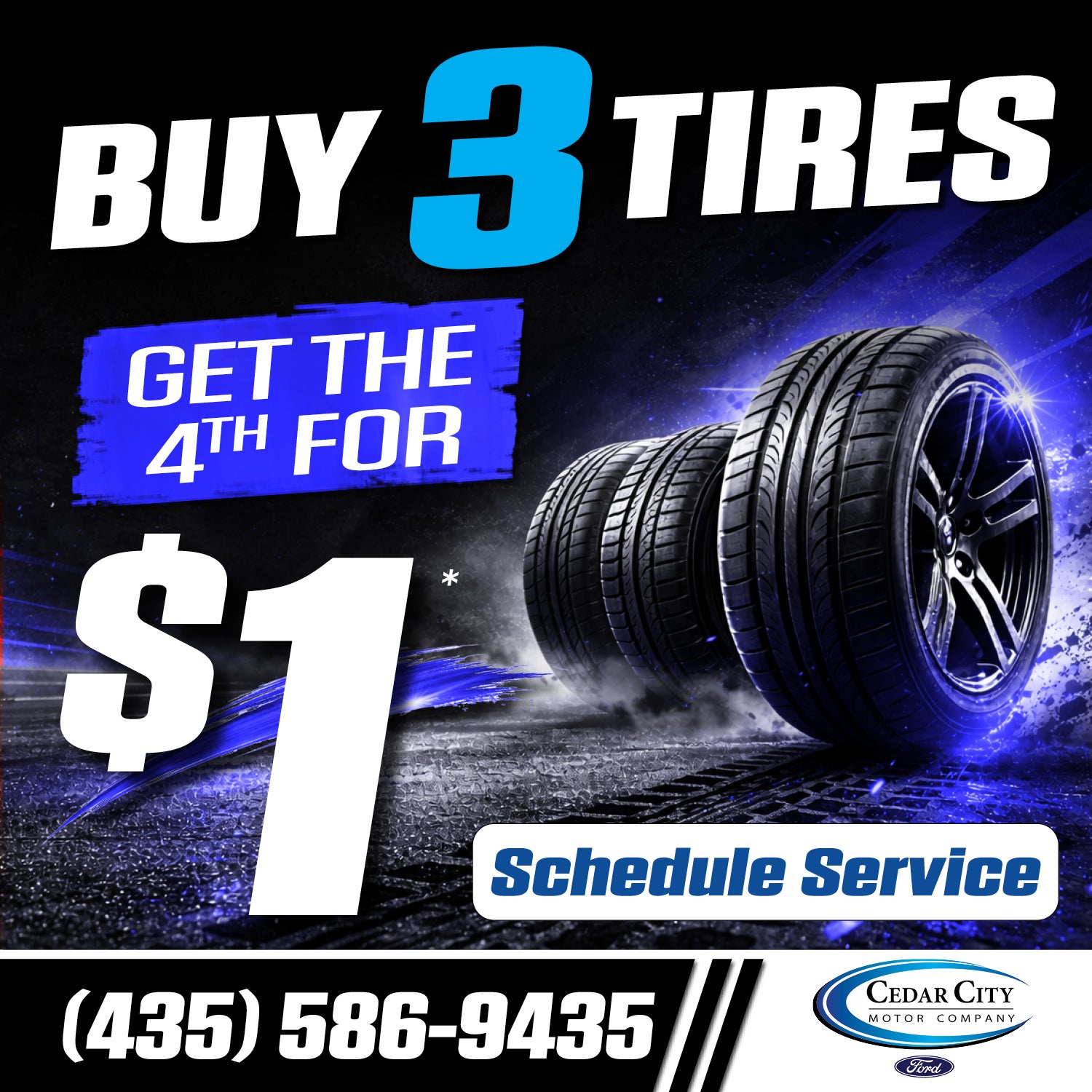 *Valid on dealer-installed retail purchases only. Excludes tires sold by third parties on marketplace sites and any resellers. To qualify all 4 tires must be of the same size and brand. See Service Advisor for details. Valid 3/15/26-3/31/26.